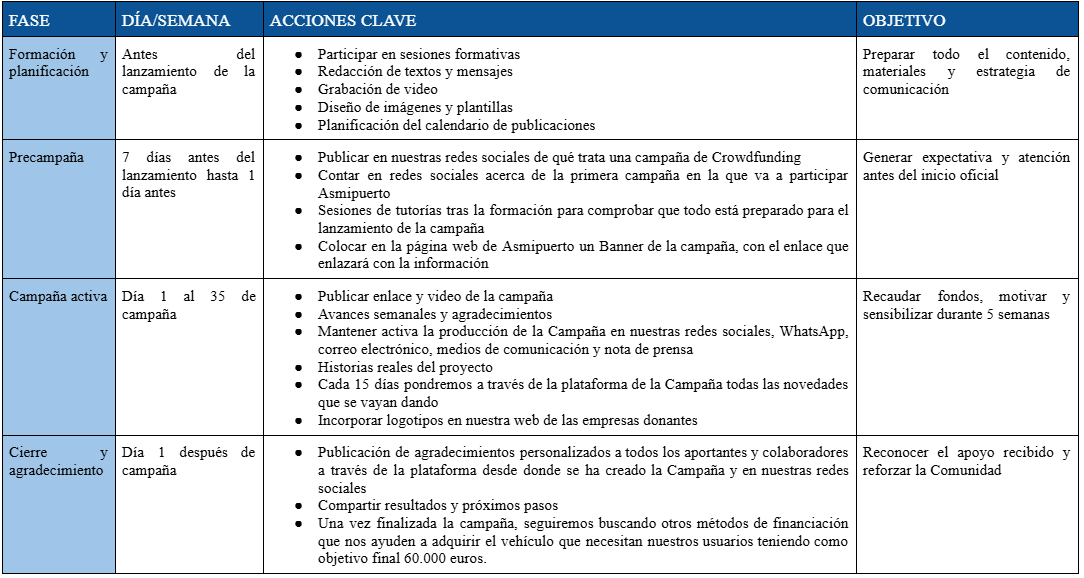 En en caso de no obtener el objetivo mínimo lo recaudado se destinará a una cuenta de ahorro con el objetivo de seguir buscando vías de financiación para conseguir el importe total para poder adquirir un vehículo adaptado.
