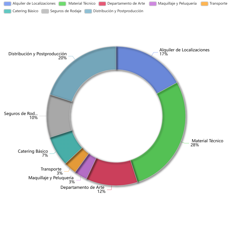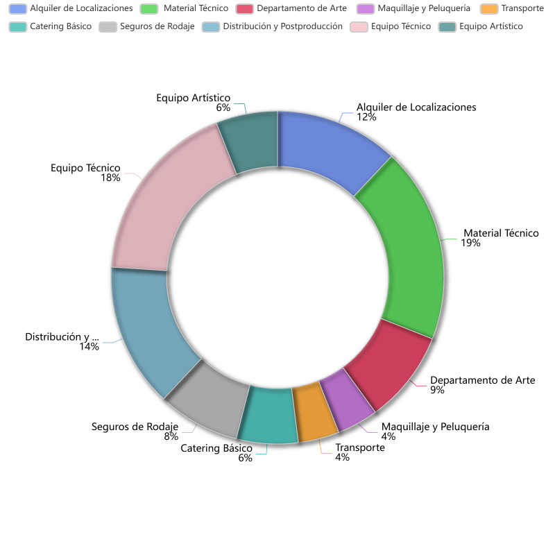 Material Técnico: Alquiler de material indispensable para el equipo como ópticas, focos, filtros, micros, monitores…Departamento de Arte: Alquiler de atrezzo y vestuario.