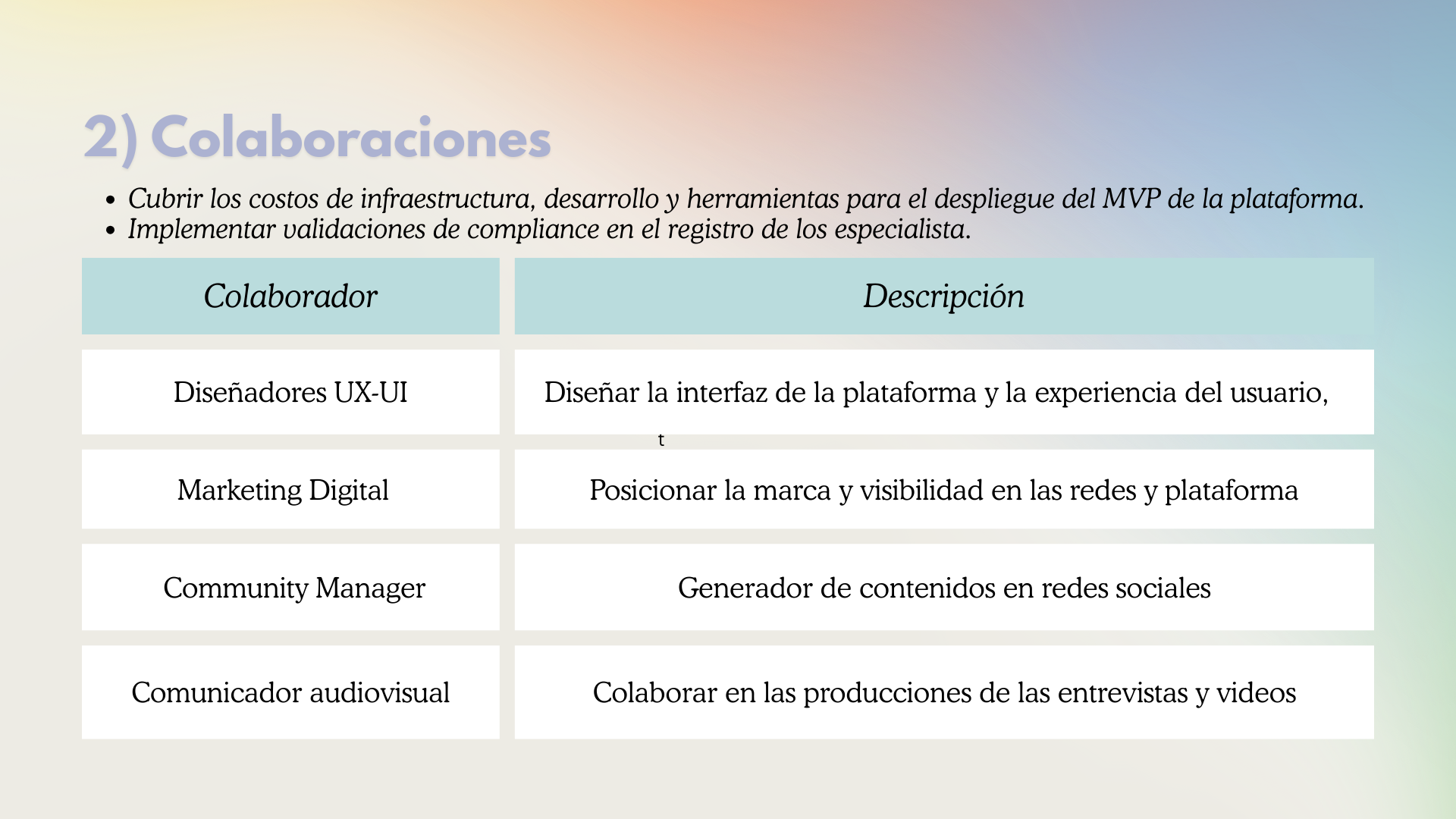 Buscamos aliados, tanto personas como entidades que colaboren activamente para llevar a cabo nuestra misión de democratizar el bienestar integral a toda nuestra comunidad.