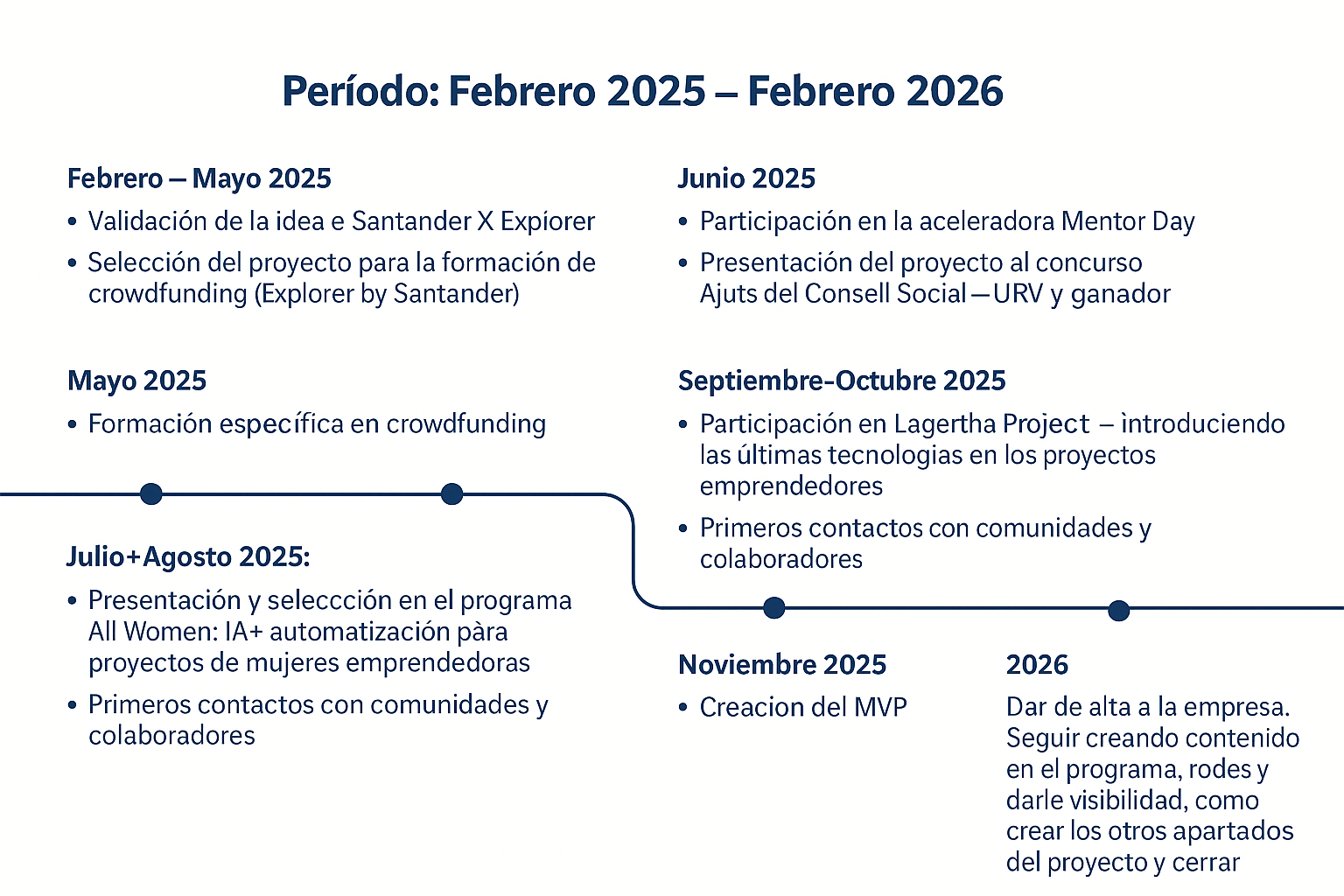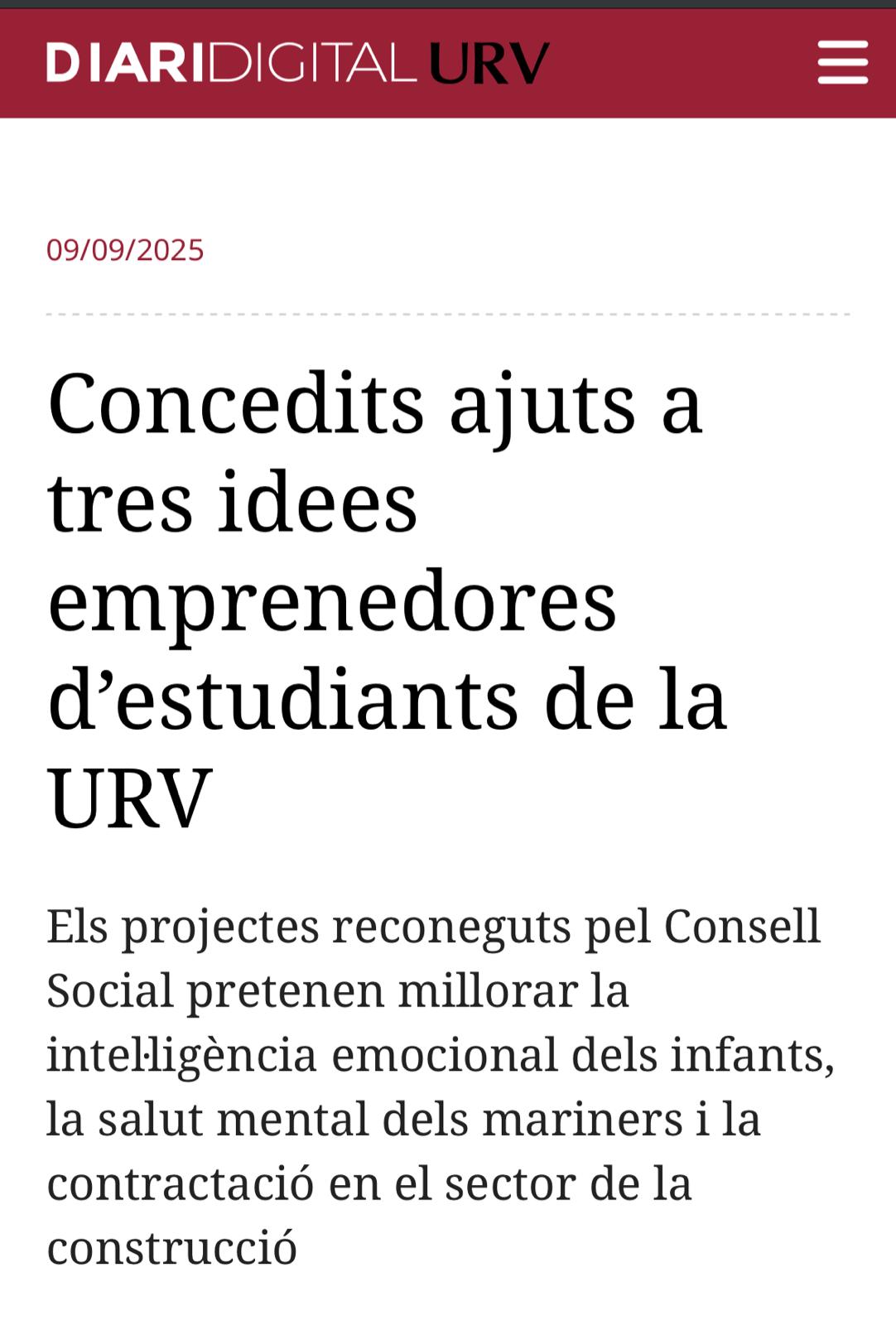 Proyecto escogido en Santander X Explorer entre los 60 de los 6000 participantes en realizar una campaña de crowdfunding, ganador como mejor proyecto en Tarragona Impulsa, y una de las 3 mejores ideas emprendedoras 2025 de la Universidad Rovira i Virgili recibiendo una beca de parte de Deputación de Tarragona y Fundación Repsol.